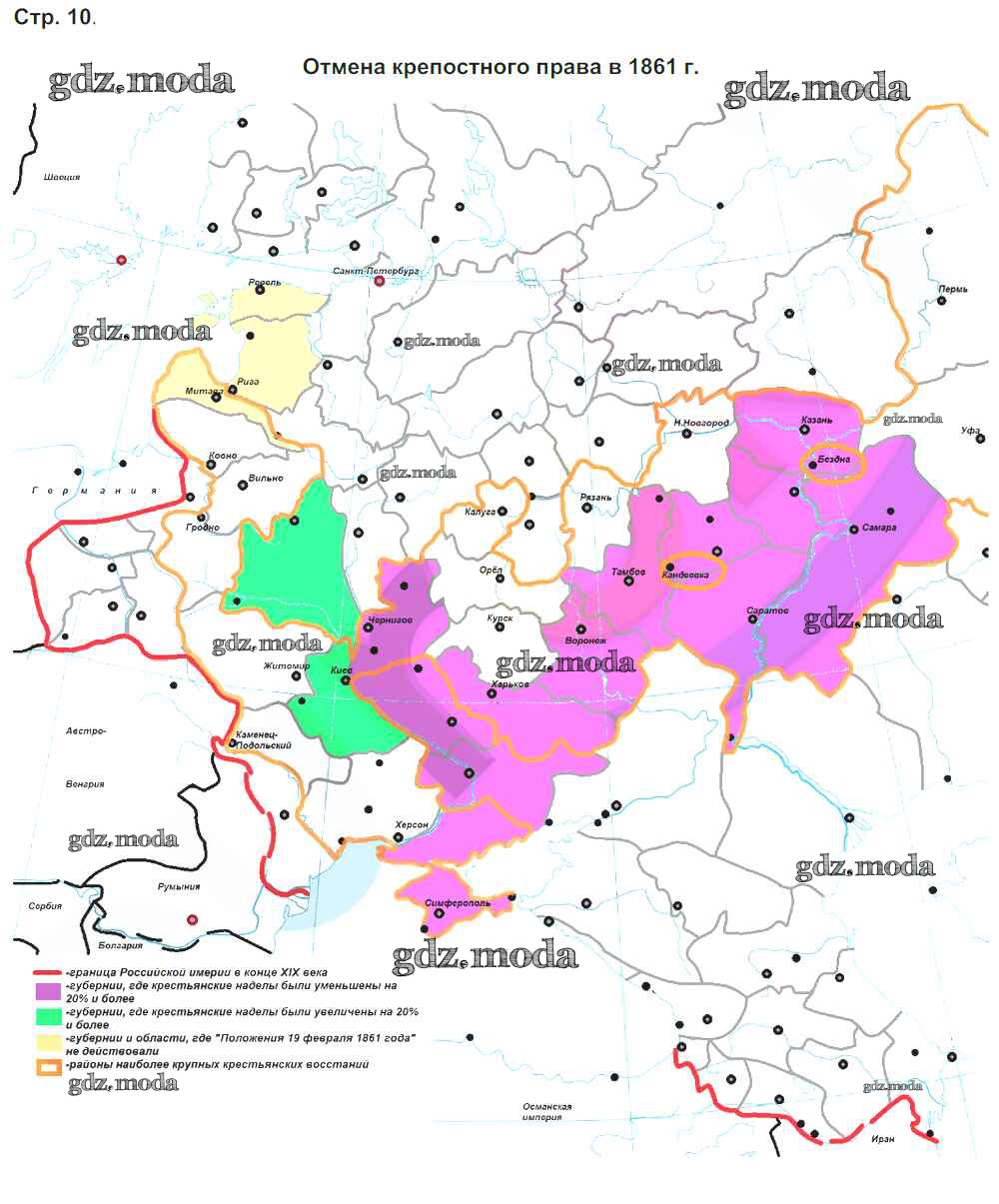 ГДЗ решение к заданию № 10 История России 9 класс контурные карты Приваловский А.Н. Дрофа 2016 ФГОС бесплатно на гдз.мода!
