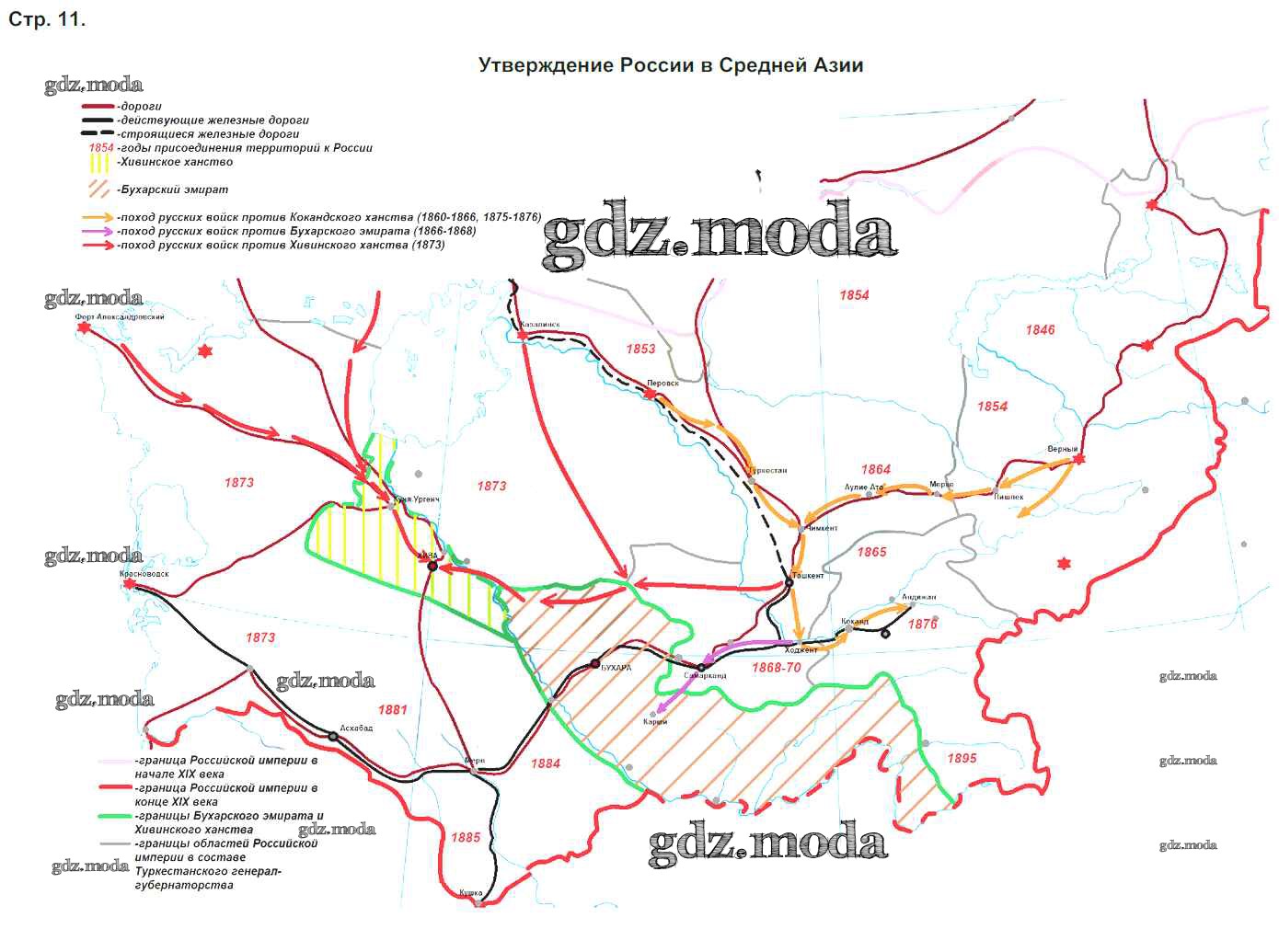 ГДЗ решение к заданию № 11 История России 9 класс контурные карты Приваловский А.Н. Дрофа 2016 ФГОС бесплатно на гдз.мода!