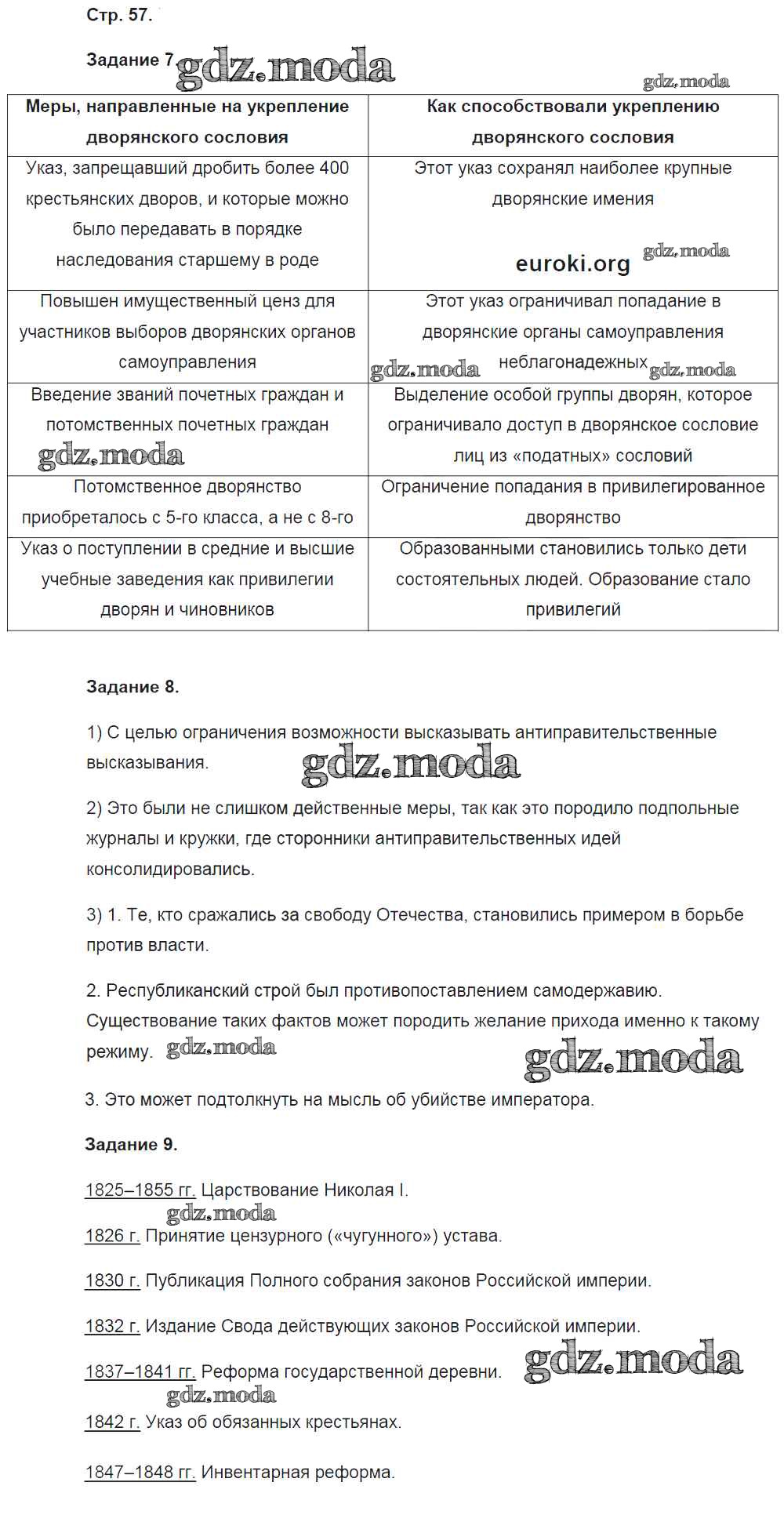 ГДЗ решение к заданию № 57 История России 9 класс рабочая тетрадь Чернова М.Н. (к уч. Торкунова А.В.) Экзамен 2017 Часть 1, Часть 2 ФГОС бесплатно на гдз.мода!