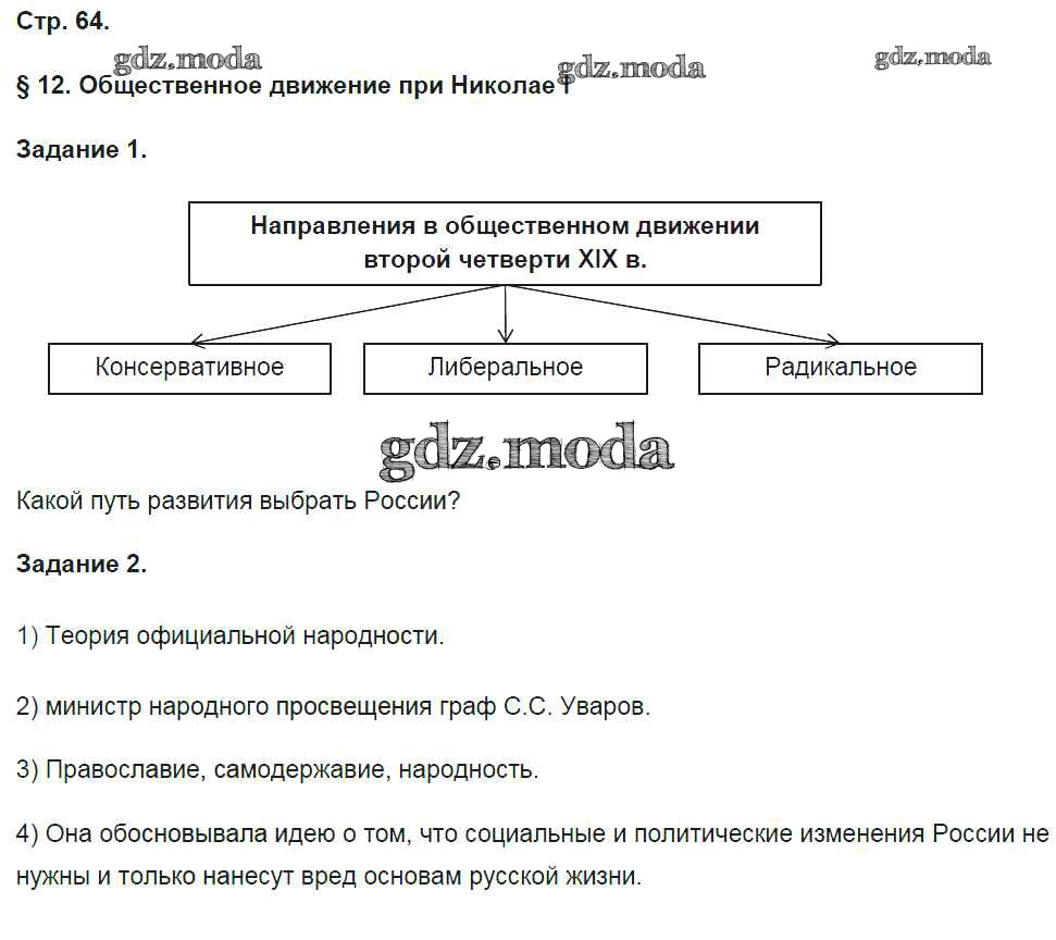 ГДЗ решение к заданию № 64 История России 9 класс рабочая тетрадь Чернова М.Н. (к уч. Торкунова А.В.) Экзамен 2017 Часть 1, Часть 2 ФГОС бесплатно на гдз.мода!