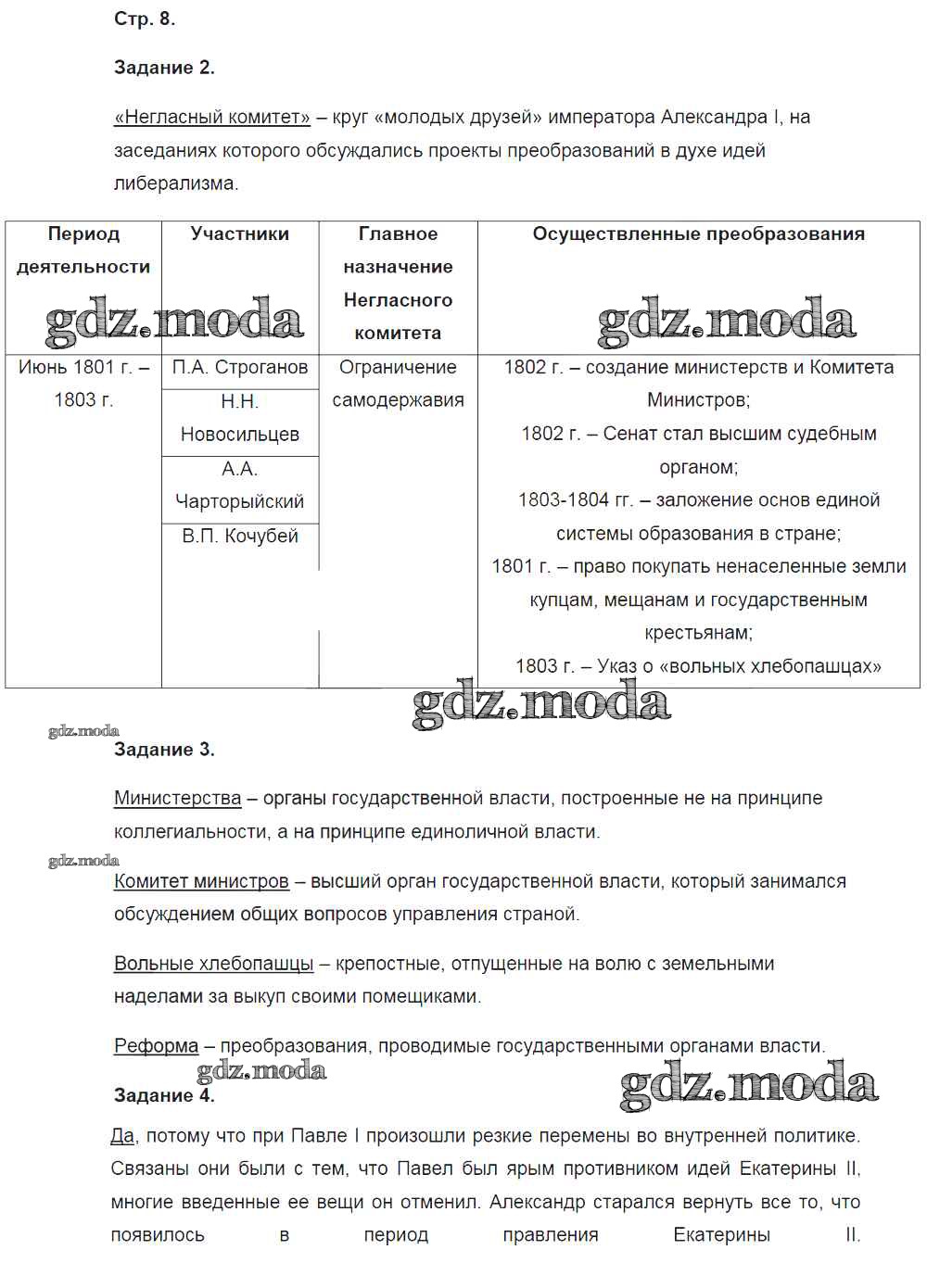 ГДЗ решение к заданию № 8 История России 9 класс рабочая тетрадь Чернова М.Н. (к уч. Торкунова А.В.) Экзамен 2017 Часть 1, Часть 2 ФГОС бесплатно на гдз.мода!