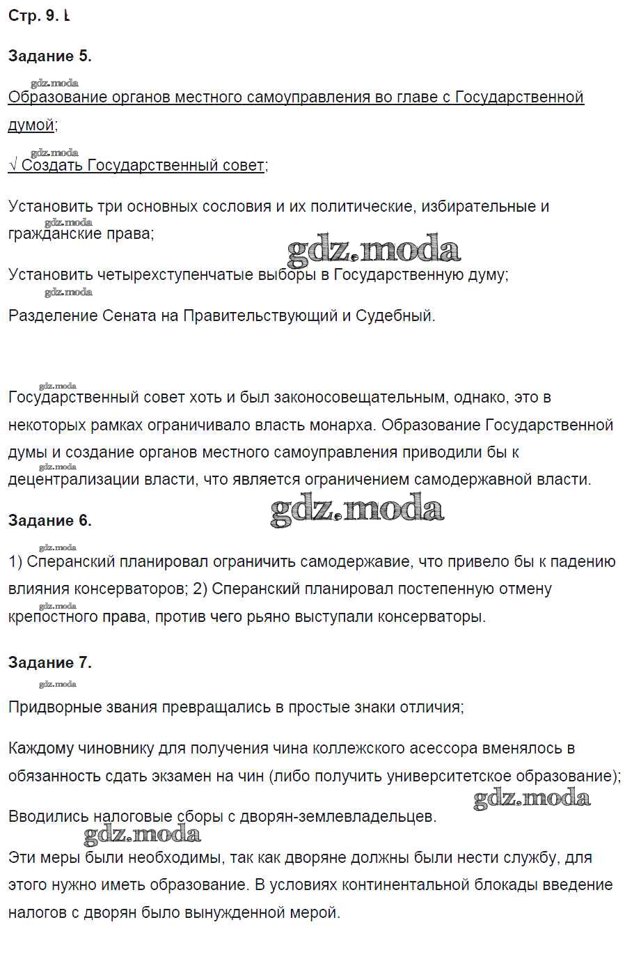 ГДЗ решение к заданию № 9 История России 9 класс рабочая тетрадь Чернова М.Н. (к уч. Торкунова А.В.) Экзамен 2017 Часть 1, Часть 2 ФГОС бесплатно на гдз.мода!