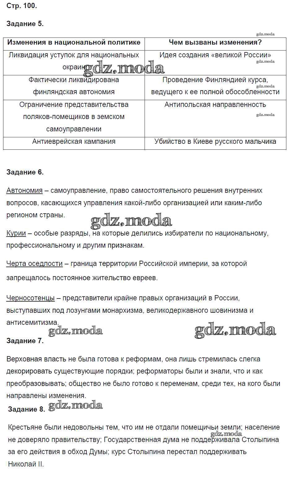 ГДЗ решение к заданию № 100 История России 9 класс рабочая тетрадь Чернова М.Н. (к уч. Торкунова А.В.) Экзамен 2017 Часть 1, Часть 2 ФГОС бесплатно на гдз.мода!