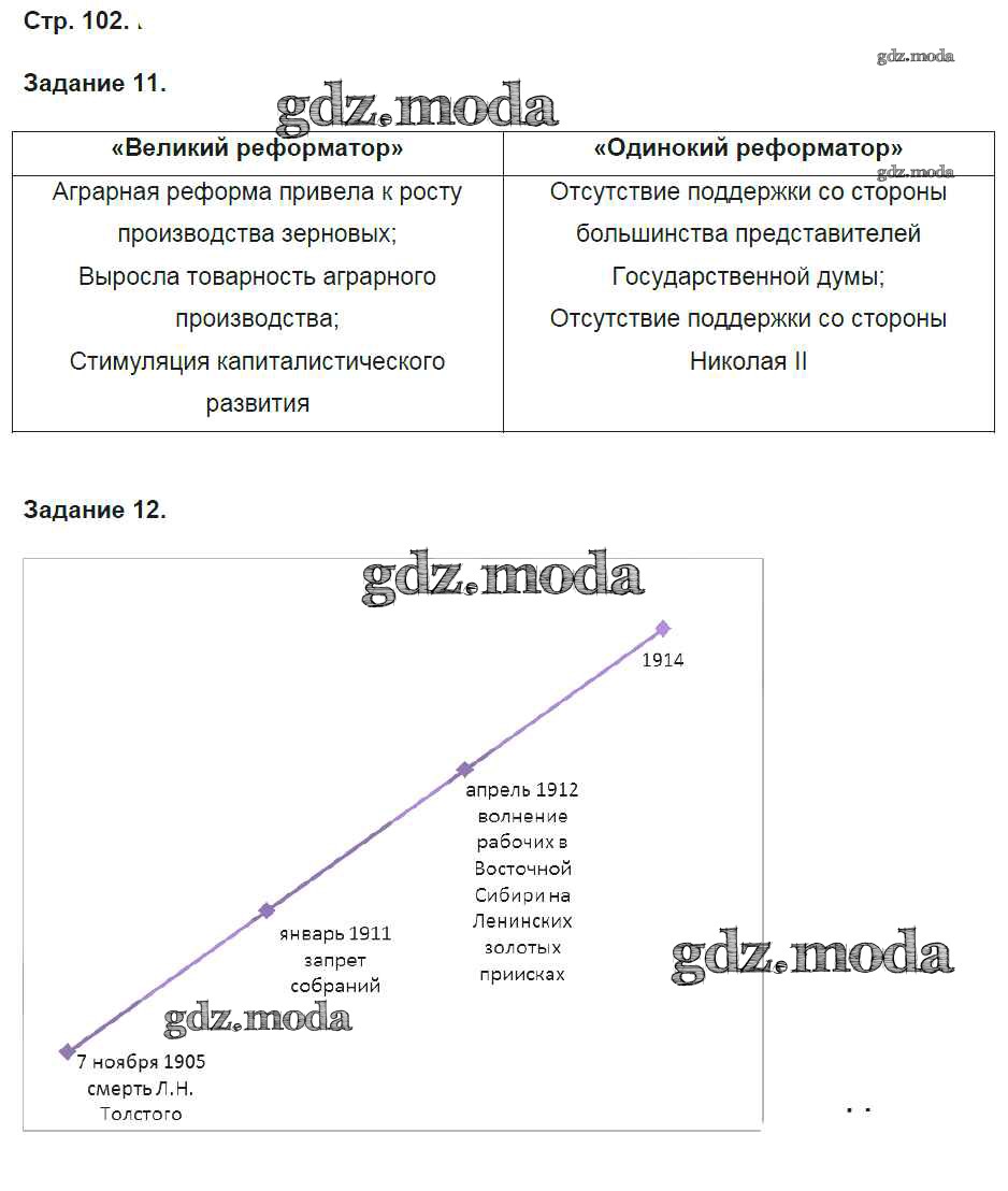 ГДЗ решение к заданию № 102 История России 9 класс рабочая тетрадь Чернова М.Н. (к уч. Торкунова А.В.) Экзамен 2017 Часть 1, Часть 2 ФГОС бесплатно на гдз.мода!
