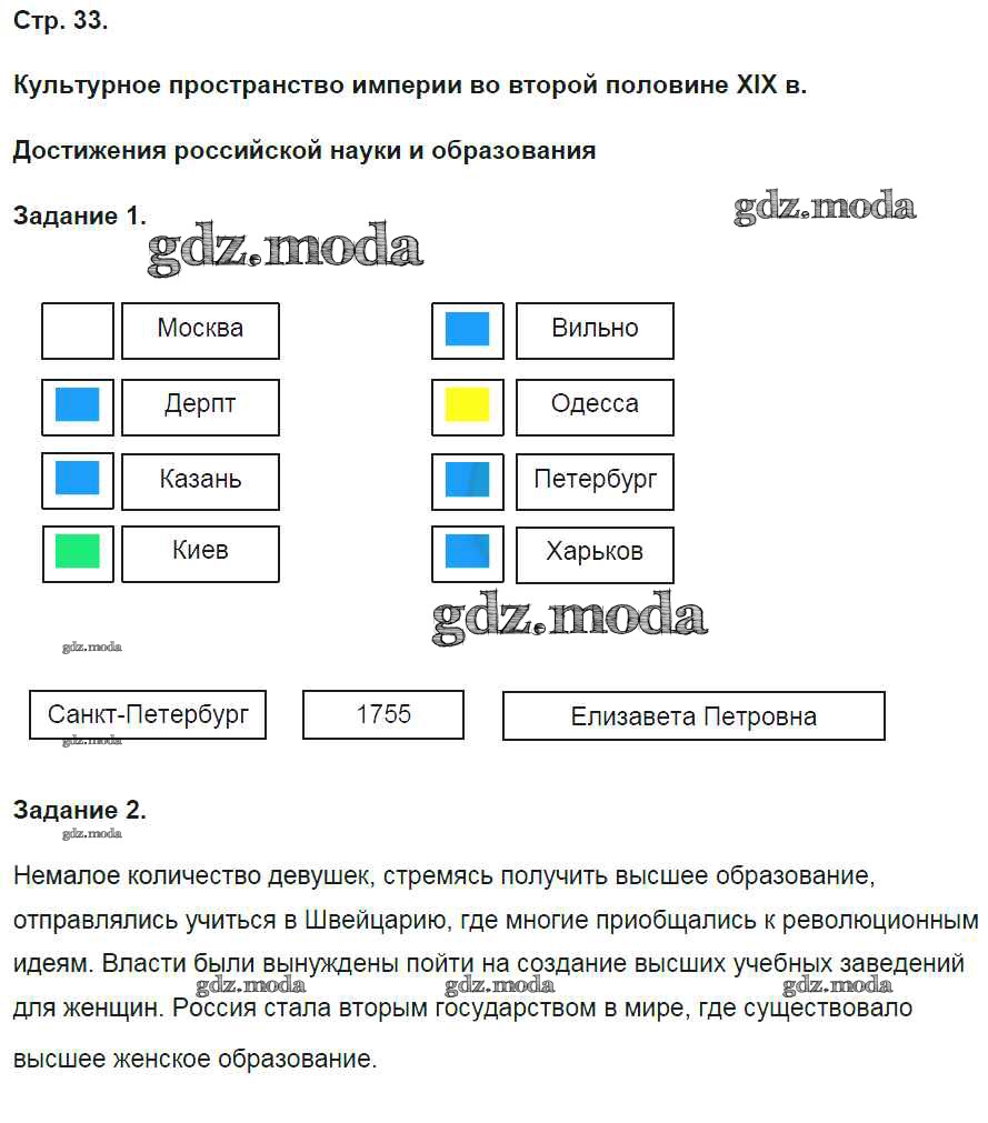 ГДЗ решение к заданию № 33 История России 9 класс рабочая тетрадь Чернова М.Н. (к уч. Торкунова А.В.) Экзамен 2017 Часть 1, Часть 2 ФГОС бесплатно на гдз.мода!