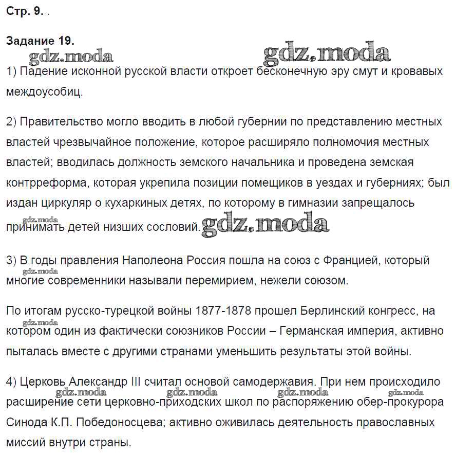 ГДЗ решение к заданию № 9 История России 9 класс рабочая тетрадь Чернова М.Н. (к уч. Торкунова А.В.) Экзамен 2017 Часть 1, Часть 2 ФГОС бесплатно на гдз.мода!