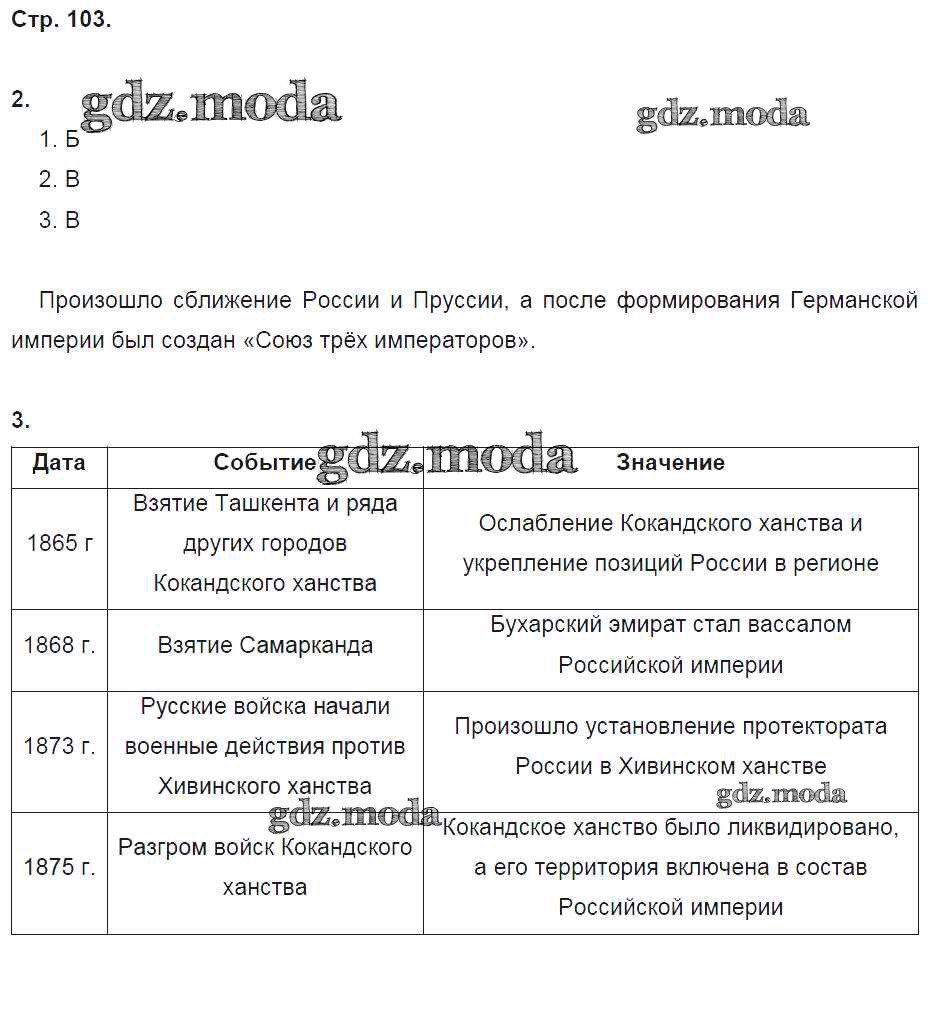 ГДЗ решение к заданию № 103 История России 9 класс рабочая тетрадь Данилов А.А. Просвещение 2017 Часть 1, Часть 2 ФГОС бесплатно на гдз.мода!