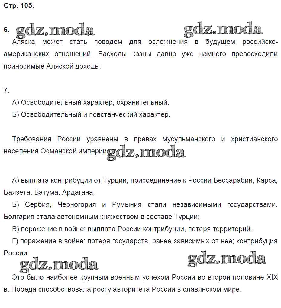 ГДЗ решение к заданию № 105 История России 9 класс рабочая тетрадь Данилов А.А. Просвещение 2017 Часть 1, Часть 2 ФГОС бесплатно на гдз.мода!