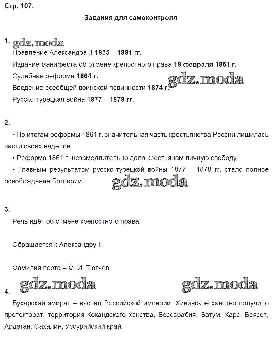 ГДЗ решение к заданию № 107 История России 9 класс рабочая тетрадь Данилов А.А. Просвещение 2017 Часть 1, Часть 2 ФГОС бесплатно на гдз.мода!