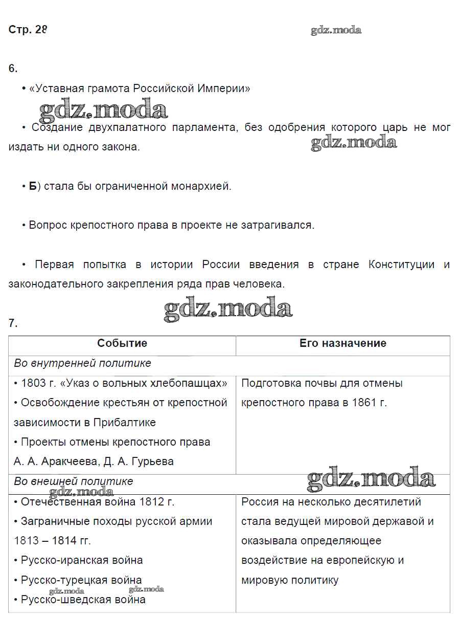 ГДЗ решение к заданию № 28 История России 9 класс рабочая тетрадь Данилов А.А. Просвещение 2017 Часть 1, Часть 2 ФГОС бесплатно на гдз.мода!