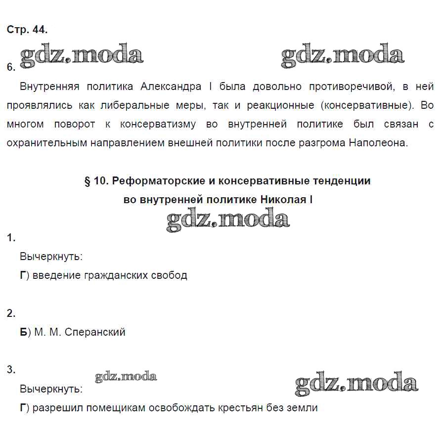 ГДЗ решение к заданию № 44 История России 9 класс рабочая тетрадь Данилов А.А. Просвещение 2017 Часть 1, Часть 2 ФГОС бесплатно на гдз.мода!