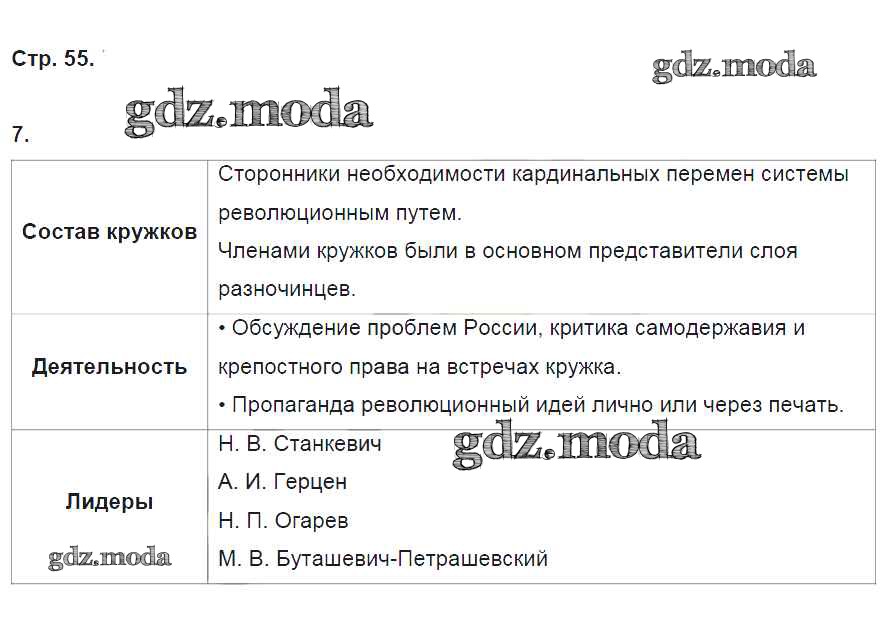 ГДЗ решение к заданию № 55 История России 9 класс рабочая тетрадь Данилов А.А. Просвещение 2017 Часть 1, Часть 2 ФГОС бесплатно на гдз.мода!