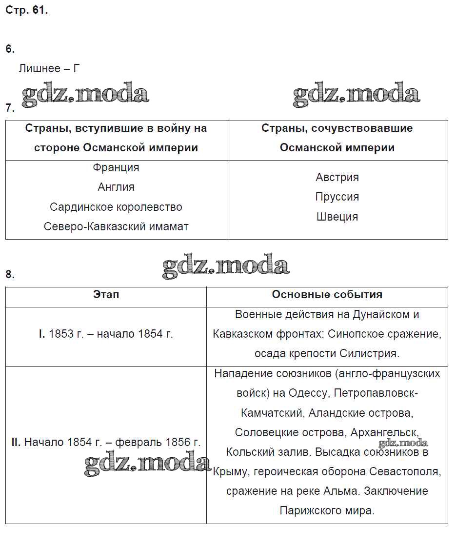 ГДЗ решение к заданию № 61 История России 9 класс рабочая тетрадь Данилов А.А. Просвещение 2017 Часть 1, Часть 2 ФГОС бесплатно на гдз.мода!