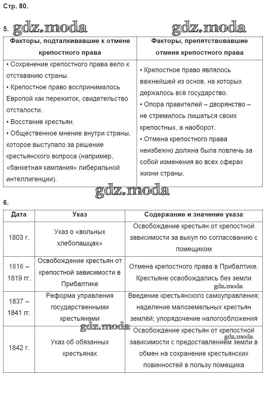 ГДЗ решение к заданию № 80 История России 9 класс рабочая тетрадь Данилов А.А. Просвещение 2017 Часть 1, Часть 2 ФГОС бесплатно на гдз.мода!