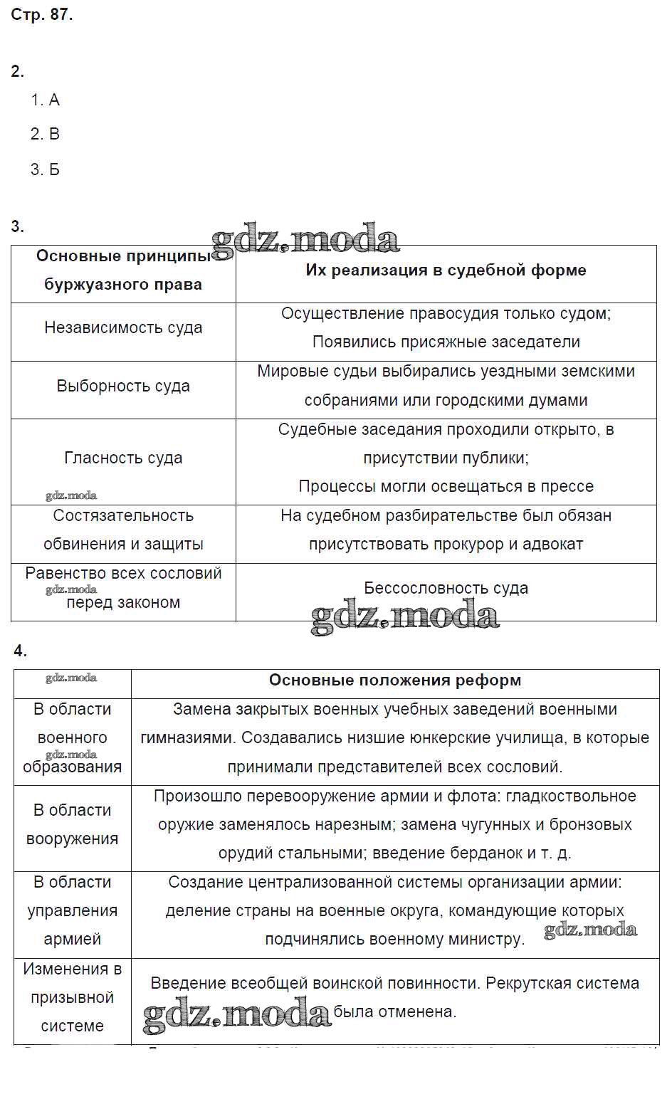 ГДЗ решение к заданию № 87 История России 9 класс рабочая тетрадь Данилов А.А. Просвещение 2017 Часть 1, Часть 2 ФГОС бесплатно на гдз.мода!