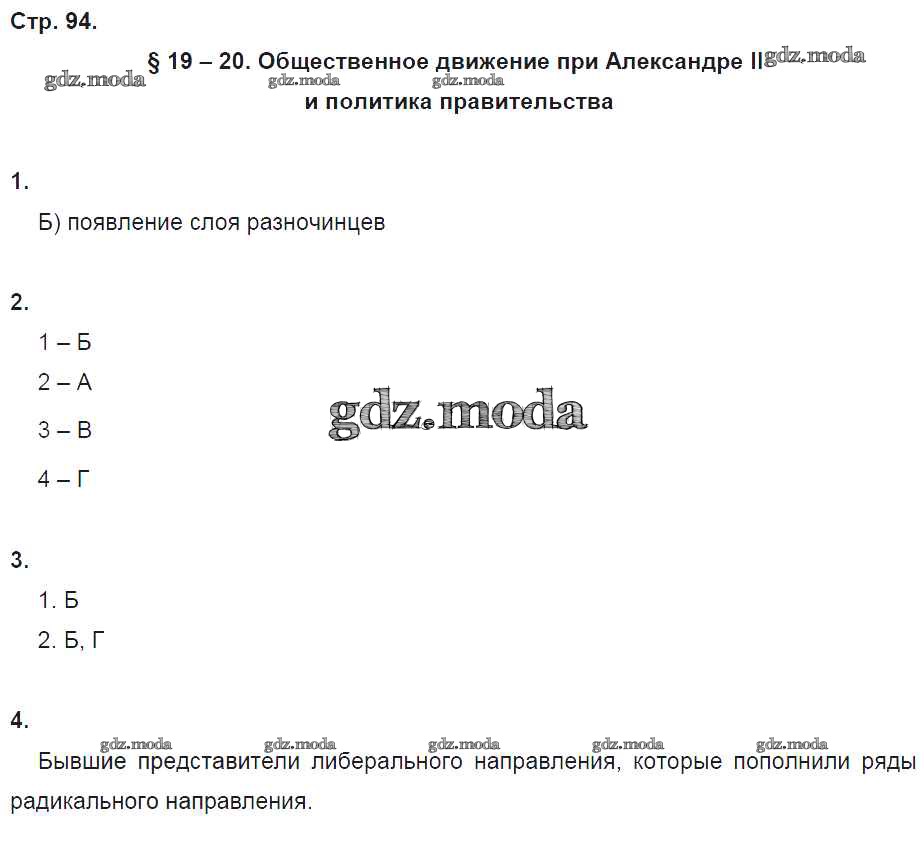 ГДЗ решение к заданию № 94 История России 9 класс рабочая тетрадь Данилов А.А. Просвещение 2017 Часть 1, Часть 2 ФГОС бесплатно на гдз.мода!