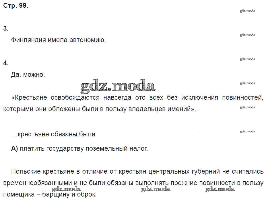 ГДЗ решение к заданию № 99 История России 9 класс рабочая тетрадь Данилов А.А. Просвещение 2017 Часть 1, Часть 2 ФГОС бесплатно на гдз.мода!