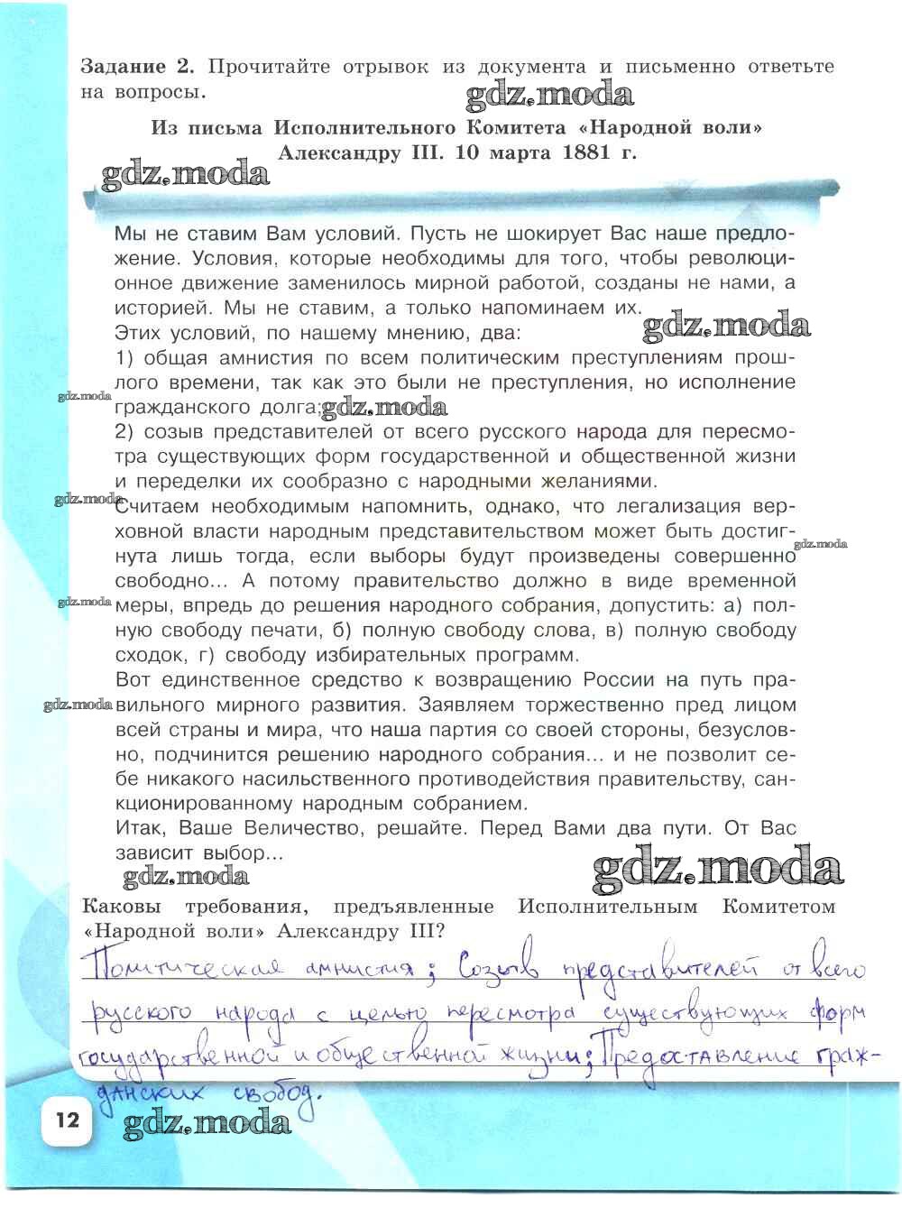 ГДЗ решение к заданию № 12 История России 9 класс рабочая тетрадь Данилов А.А. Просвещение 2017 Часть 1, Часть 2 ФГОС бесплатно на гдз.мода!