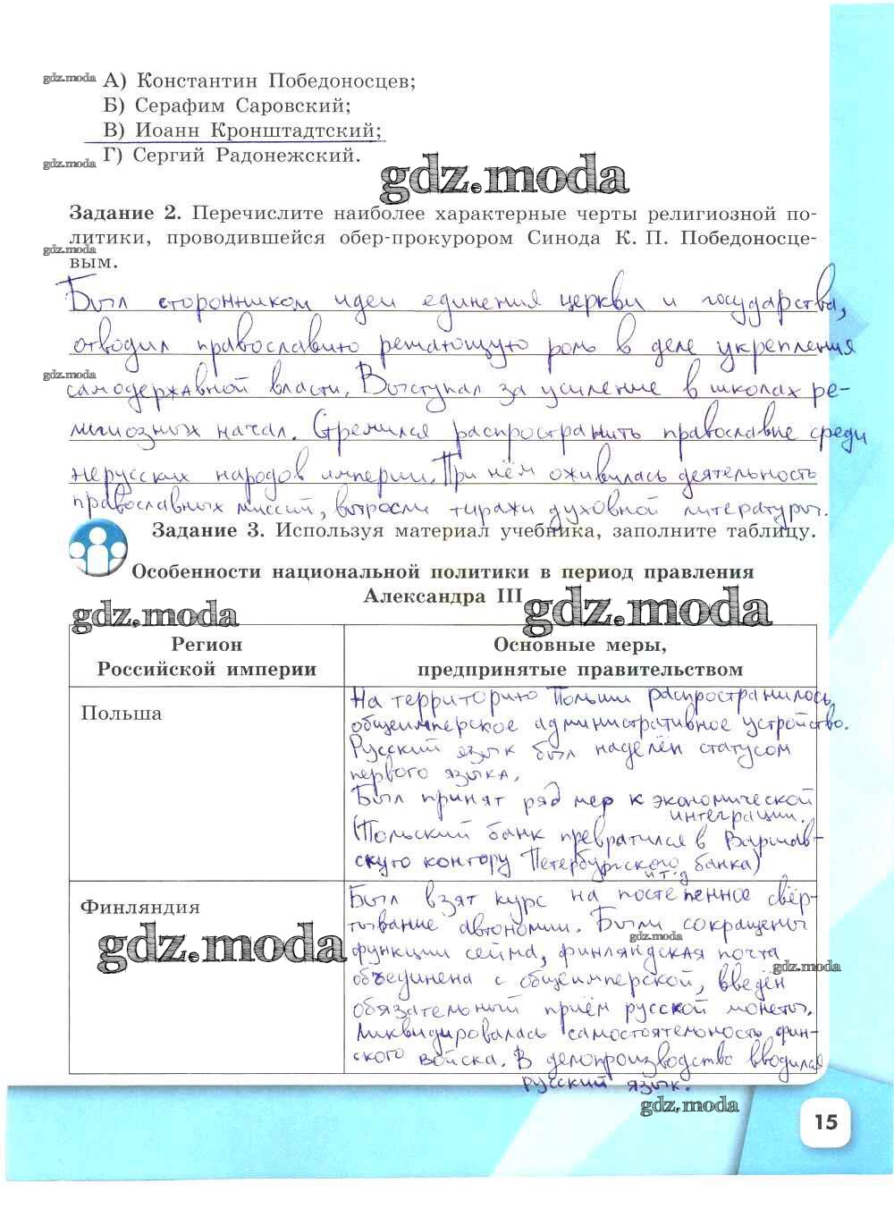 ГДЗ решение к заданию № 15 История России 9 класс рабочая тетрадь Данилов А.А. Просвещение 2017 Часть 1, Часть 2 ФГОС бесплатно на гдз.мода!