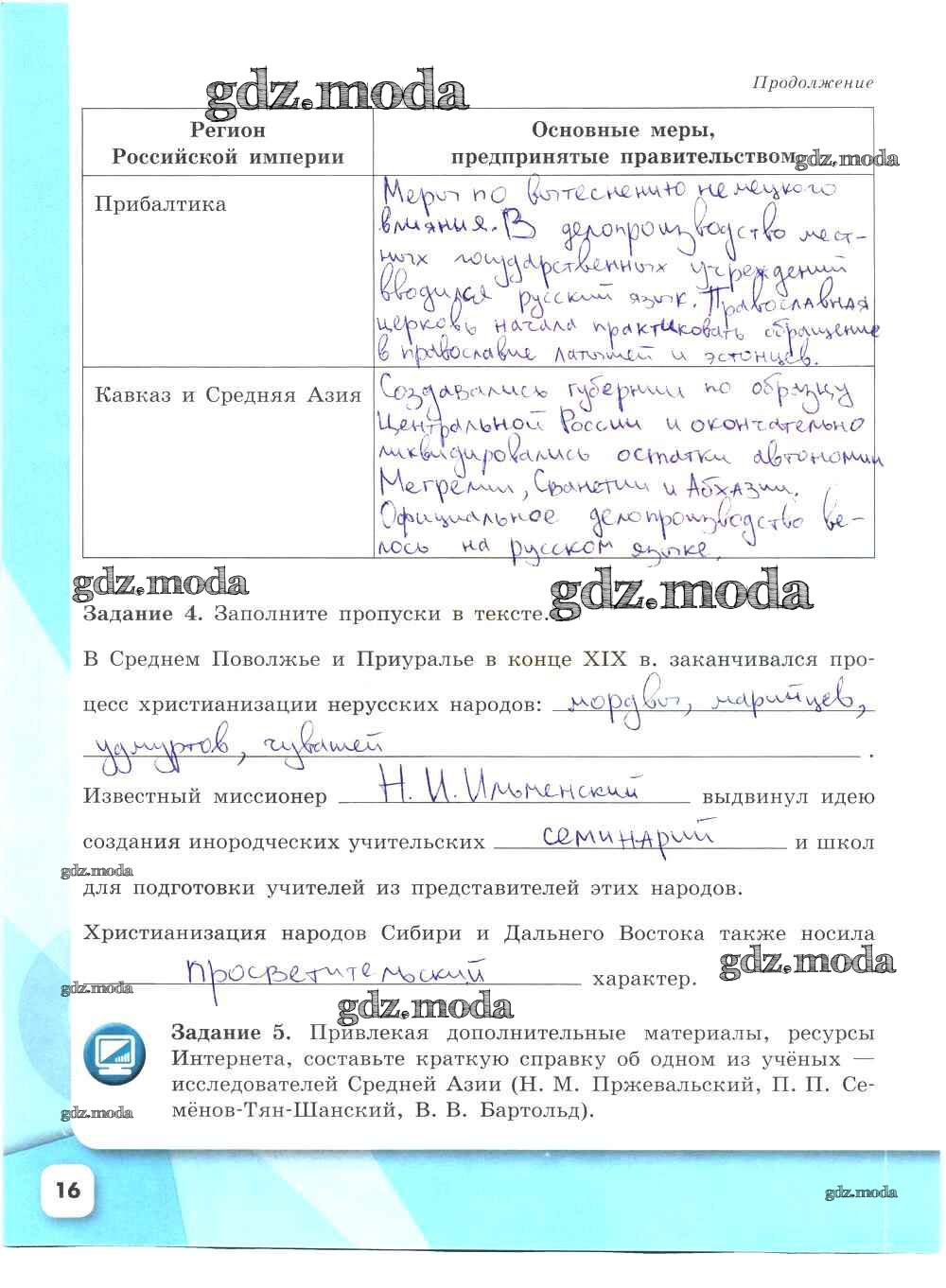 ГДЗ решение к заданию № 16 История России 9 класс рабочая тетрадь Данилов А.А. Просвещение 2017 Часть 1, Часть 2 ФГОС бесплатно на гдз.мода!
