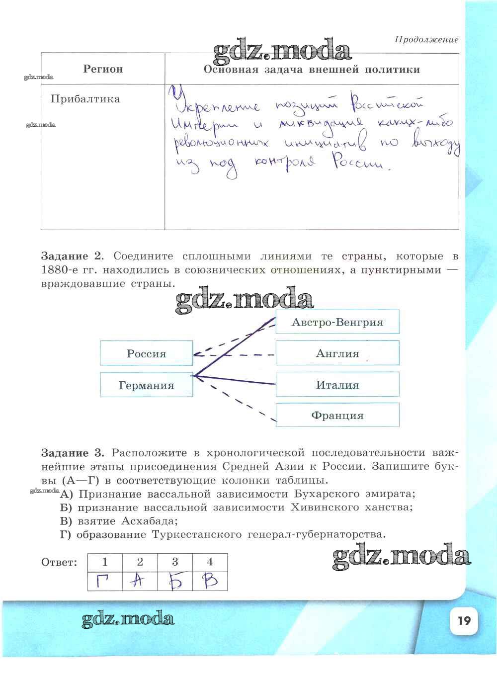 ГДЗ решение к заданию № 19 История России 9 класс рабочая тетрадь Данилов А.А. Просвещение 2017 Часть 1, Часть 2 ФГОС бесплатно на гдз.мода!