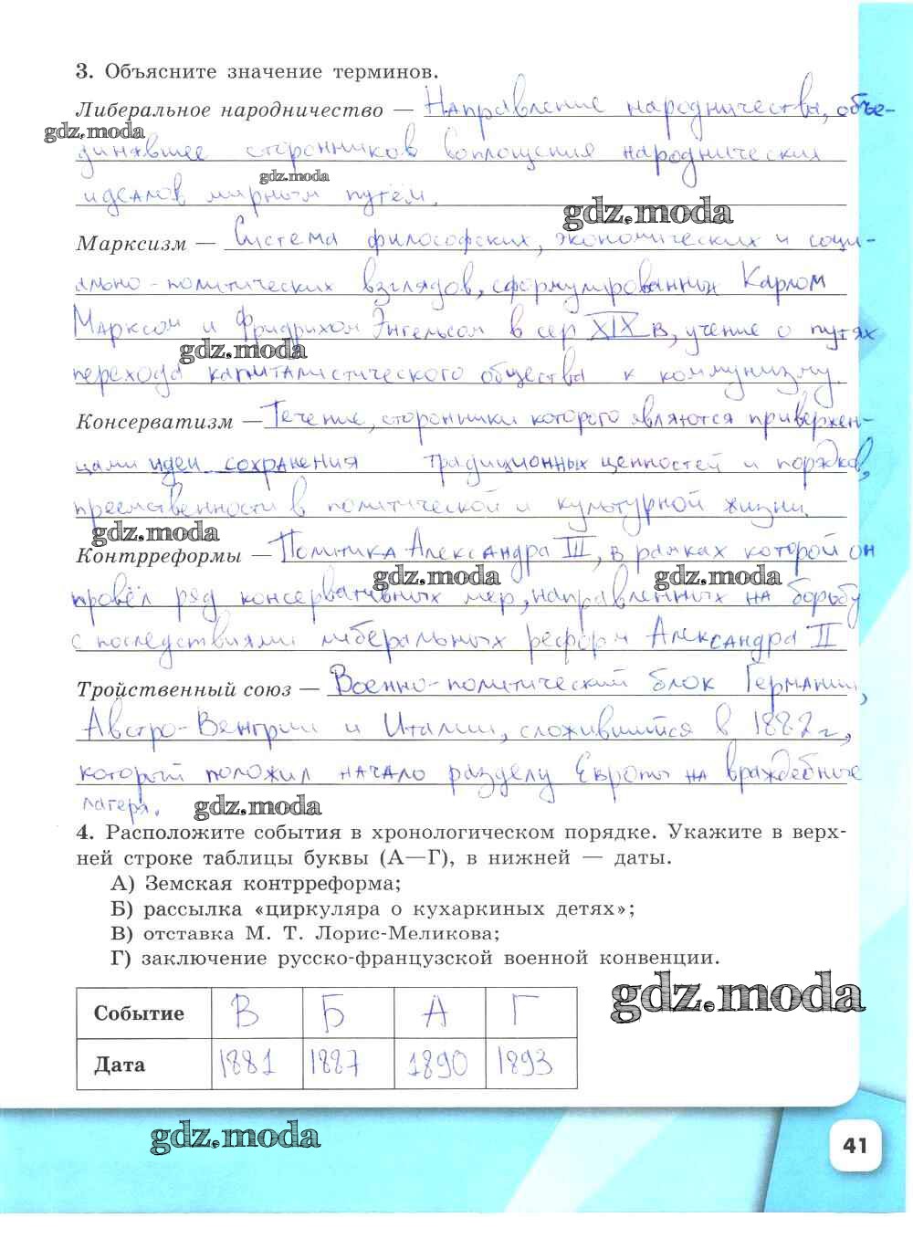 ГДЗ решение к заданию № 41 История России 9 класс рабочая тетрадь Данилов А.А. Просвещение 2017 Часть 1, Часть 2 ФГОС бесплатно на гдз.мода!