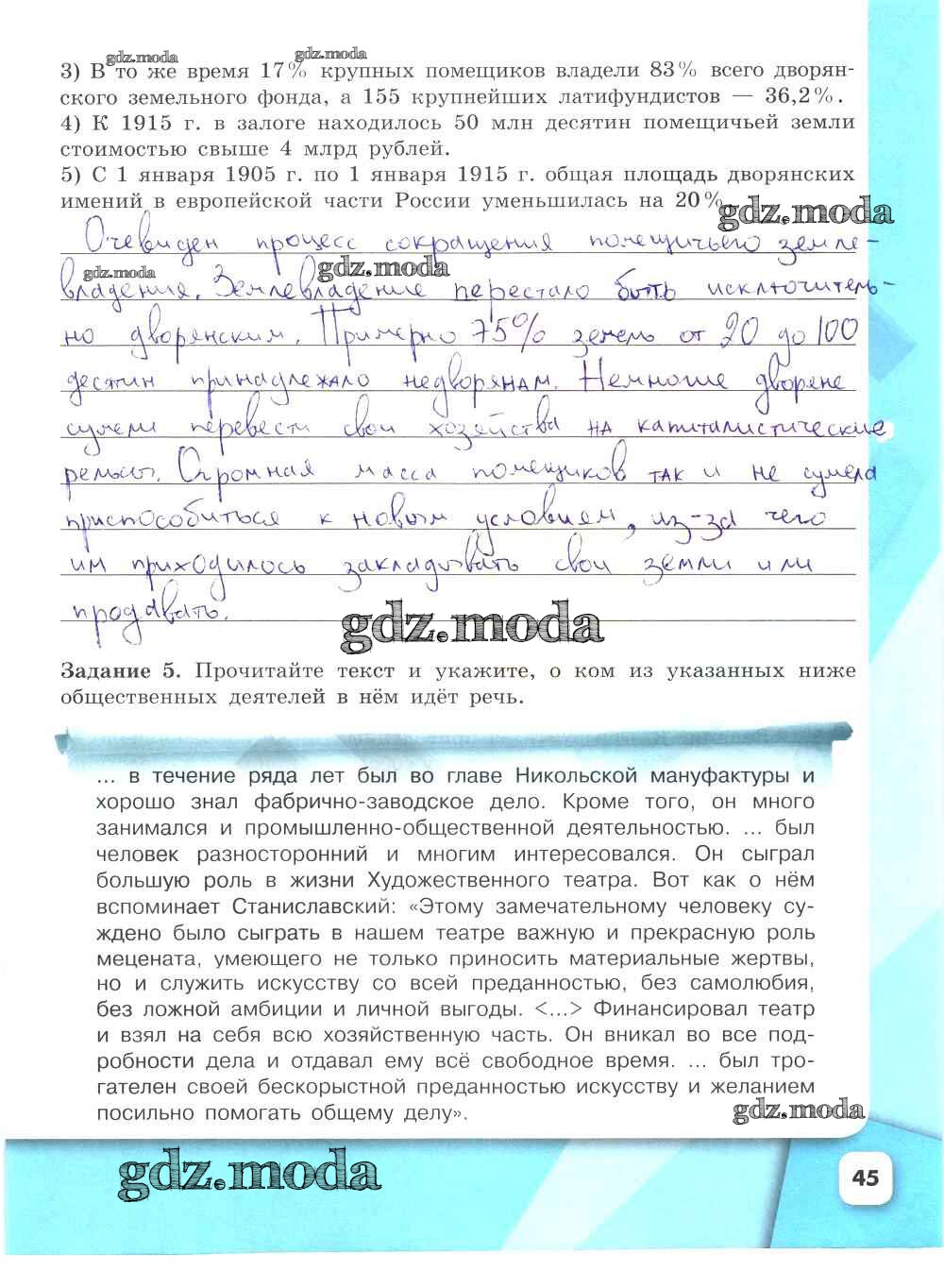 ГДЗ решение к заданию № 45 История России 9 класс рабочая тетрадь Данилов А.А. Просвещение 2017 Часть 1, Часть 2 ФГОС бесплатно на гдз.мода!