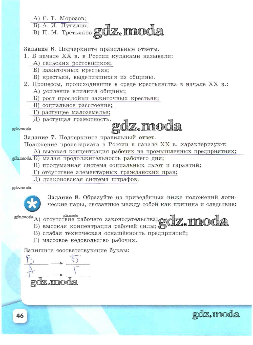 ГДЗ решение к заданию № 46 История России 9 класс рабочая тетрадь Данилов А.А. Просвещение 2017 Часть 1, Часть 2 ФГОС бесплатно на гдз.мода!