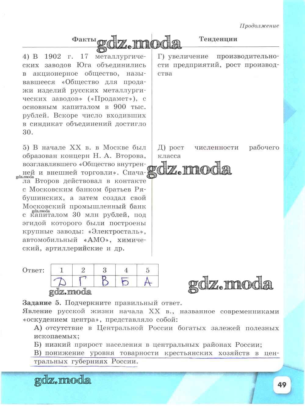 ГДЗ решение к заданию № 49 История России 9 класс рабочая тетрадь Данилов А.А. Просвещение 2017 Часть 1, Часть 2 ФГОС бесплатно на гдз.мода!