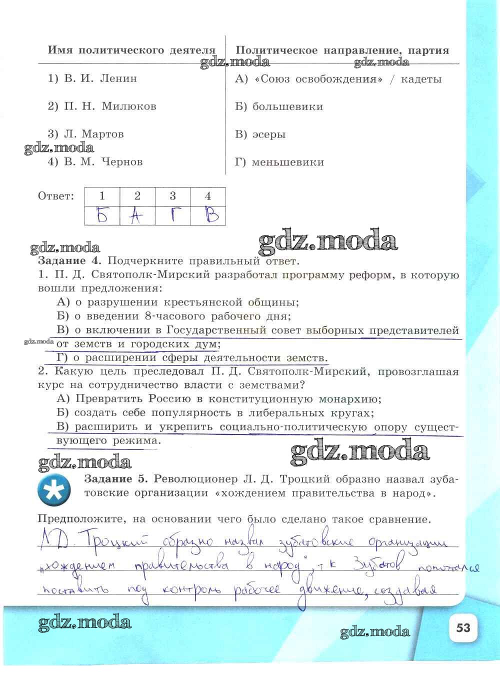 ГДЗ решение к заданию № 53 История России 9 класс рабочая тетрадь Данилов А.А. Просвещение 2017 Часть 1, Часть 2 ФГОС бесплатно на гдз.мода!