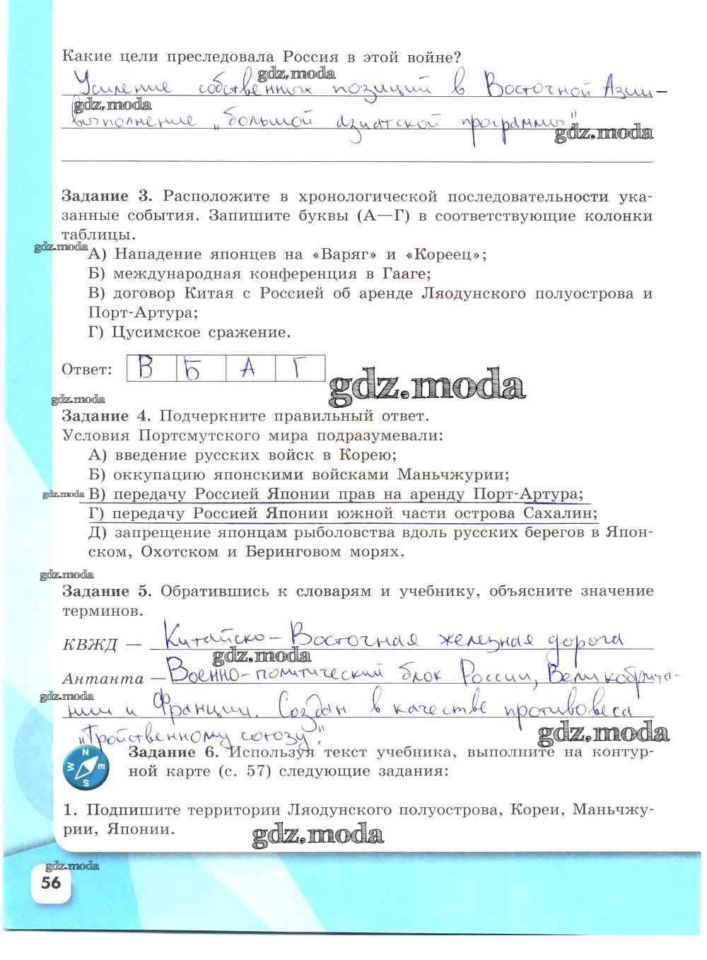 ГДЗ решение к заданию № 56 История России 9 класс рабочая тетрадь Данилов А.А. Просвещение 2017 Часть 1, Часть 2 ФГОС бесплатно на гдз.мода!