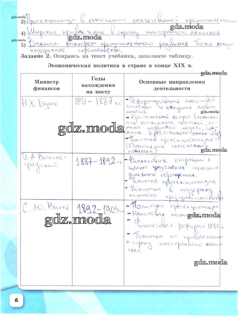 ГДЗ решение к заданию № 6 История России 9 класс рабочая тетрадь Данилов А.А. Просвещение 2017 Часть 1, Часть 2 ФГОС бесплатно на гдз.мода!