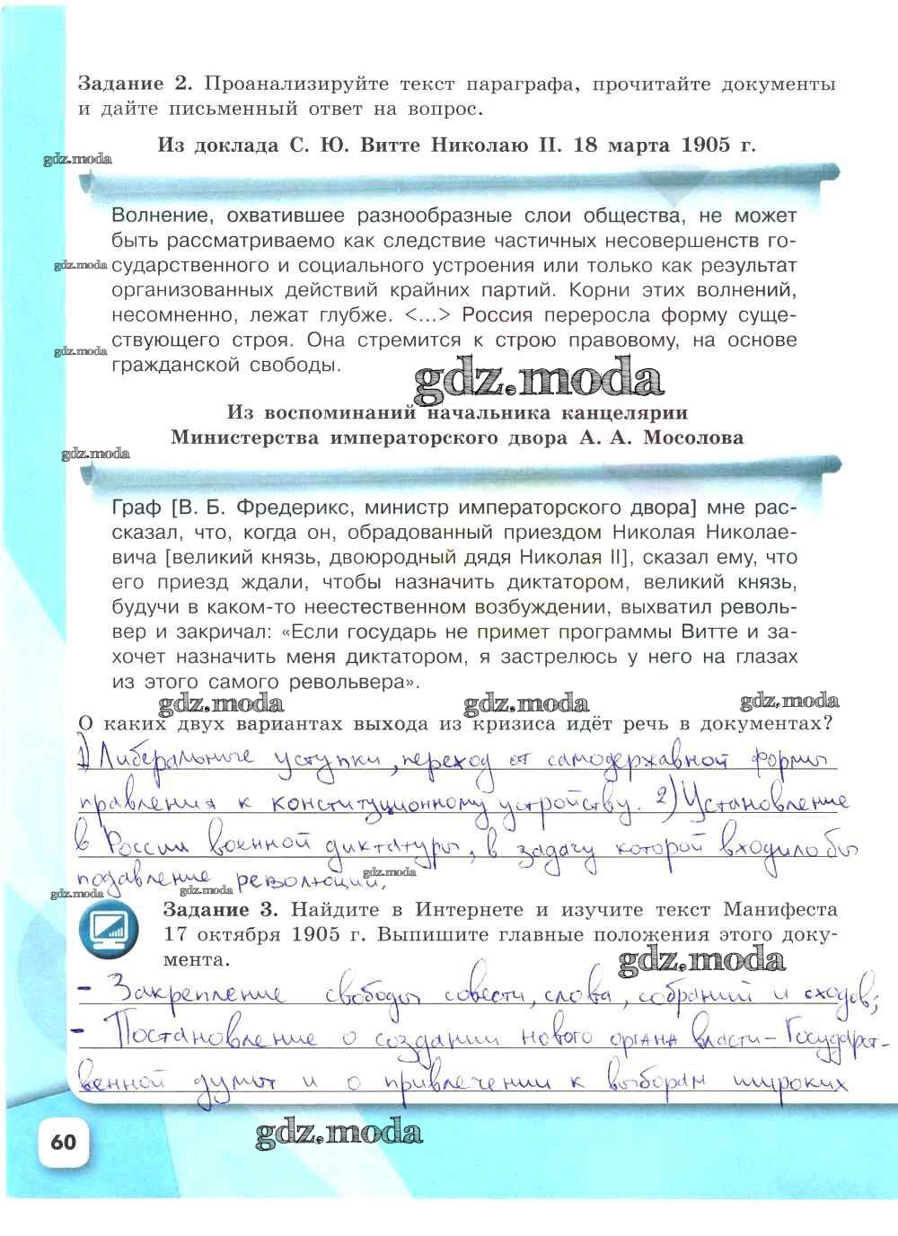 ГДЗ решение к заданию № 60 История России 9 класс рабочая тетрадь Данилов А.А. Просвещение 2017 Часть 1, Часть 2 ФГОС бесплатно на гдз.мода!