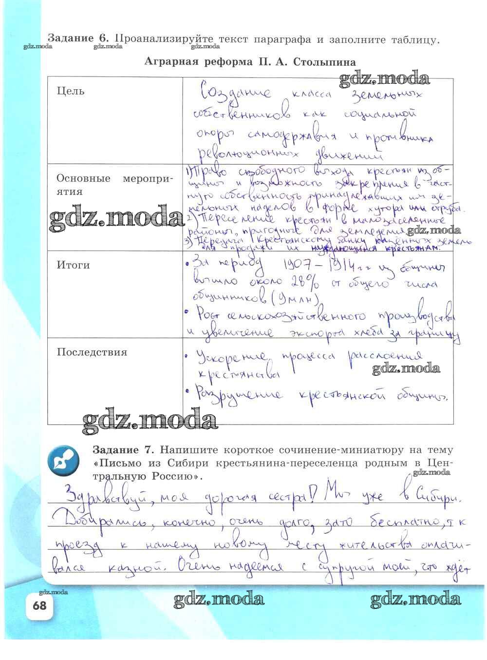 ГДЗ решение к заданию № 68 История России 9 класс рабочая тетрадь Данилов А.А. Просвещение 2017 Часть 1, Часть 2 ФГОС бесплатно на гдз.мода!