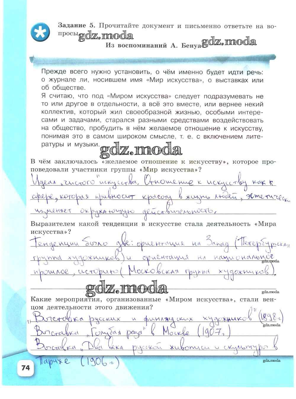 ГДЗ решение к заданию № 74 История России 9 класс рабочая тетрадь Данилов А.А. Просвещение 2017 Часть 1, Часть 2 ФГОС бесплатно на гдз.мода!