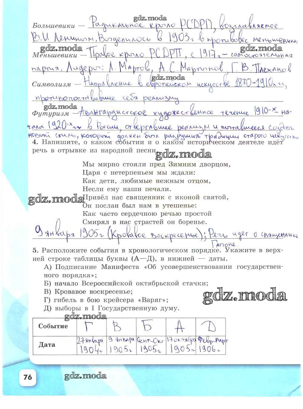 ГДЗ решение к заданию № 76 История России 9 класс рабочая тетрадь Данилов А.А. Просвещение 2017 Часть 1, Часть 2 ФГОС бесплатно на гдз.мода!
