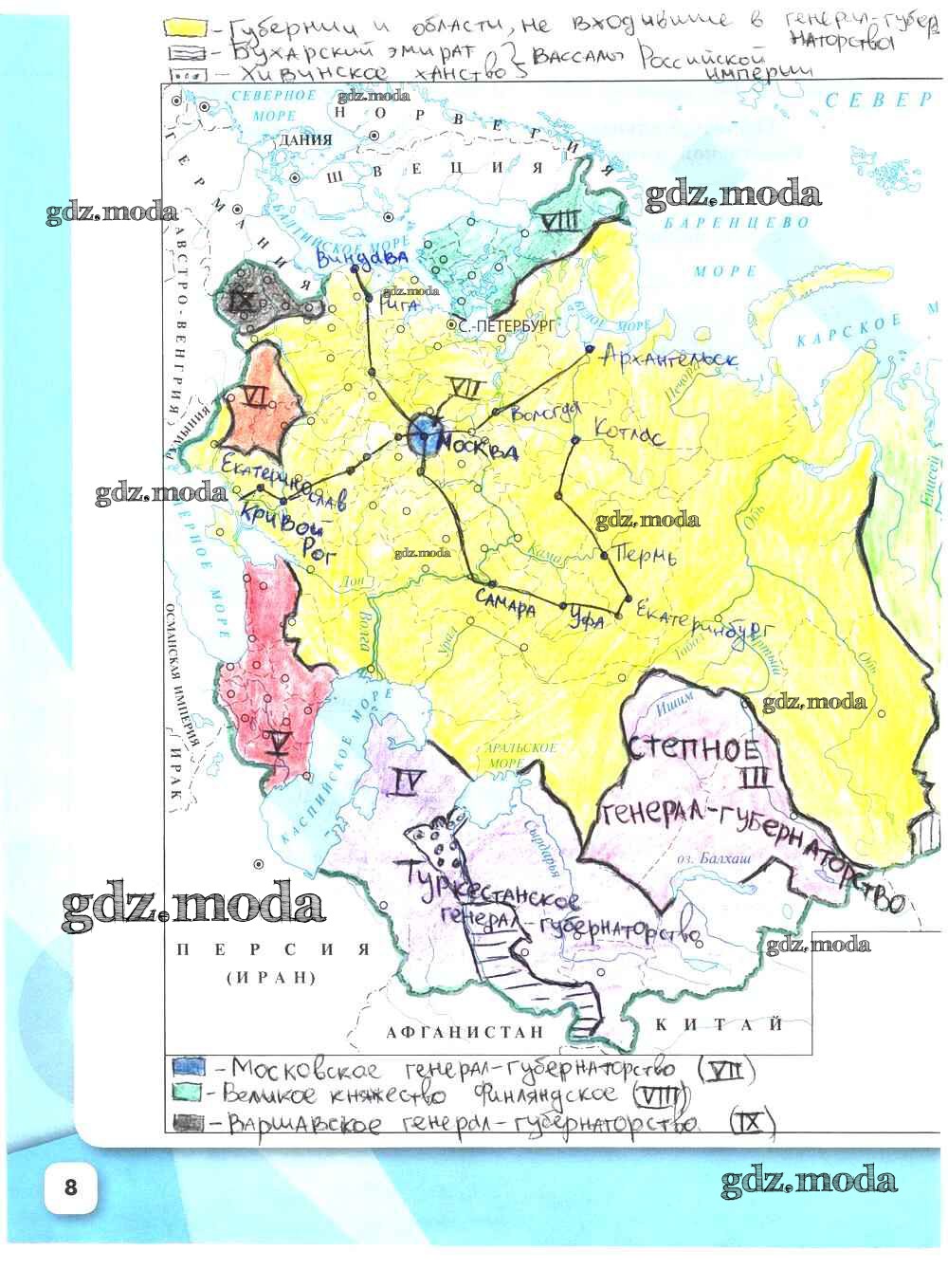 ГДЗ решение к заданию № 8 История России 9 класс рабочая тетрадь Данилов А.А. Просвещение 2017 Часть 1, Часть 2 ФГОС бесплатно на гдз.мода!