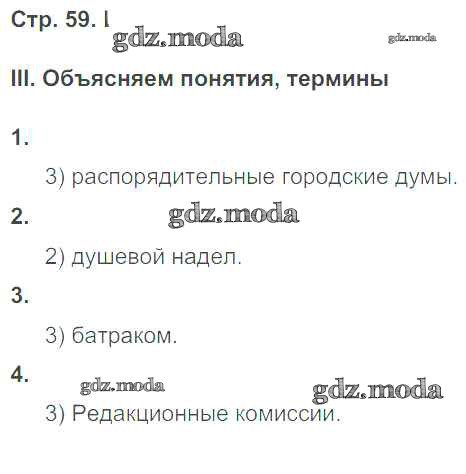 ГДЗ решение к заданию № 59 История России 9 класс рабочая тетрадь. Универсальные учебные действия Гевуркова Е.А. (к уч. Торкунова А.В.) Экзамен 2019 ФГОС бесплатно на гдз.мода!
