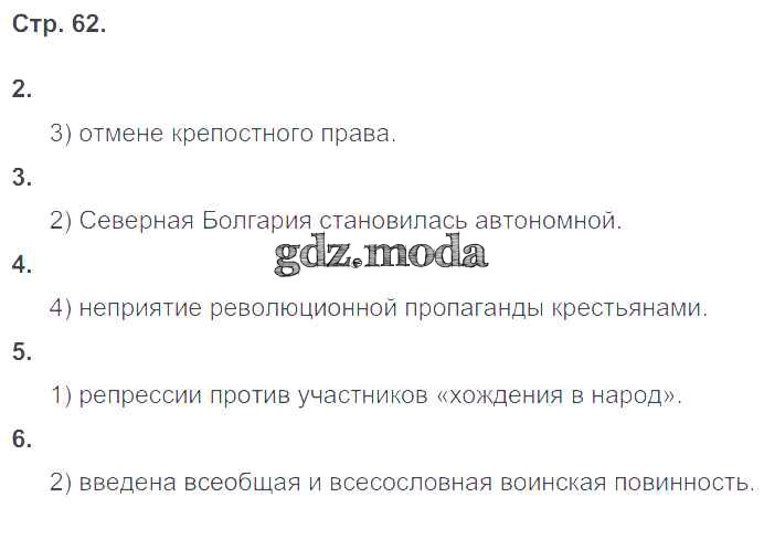 ОТВЕТ на задание № 62 Рабочая тетрадь по Истории 9 класс Гевуркова УМК