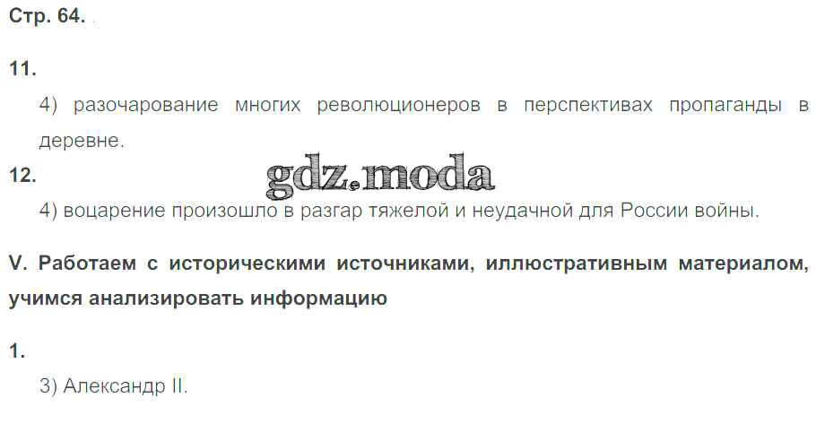 ГДЗ решение к заданию № 64 История России 9 класс рабочая тетрадь. Универсальные учебные действия Гевуркова Е.А. (к уч. Торкунова А.В.) Экзамен 2019 ФГОС бесплатно на гдз.мода!