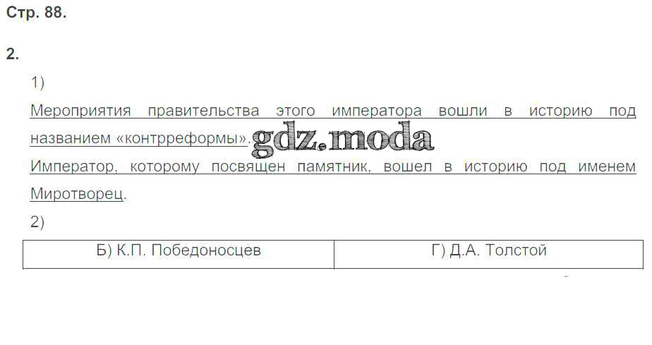 ГДЗ решение к заданию № 88 История России 9 класс рабочая тетрадь. Универсальные учебные действия Гевуркова Е.А. (к уч. Торкунова А.В.) Экзамен 2019 ФГОС бесплатно на гдз.мода!