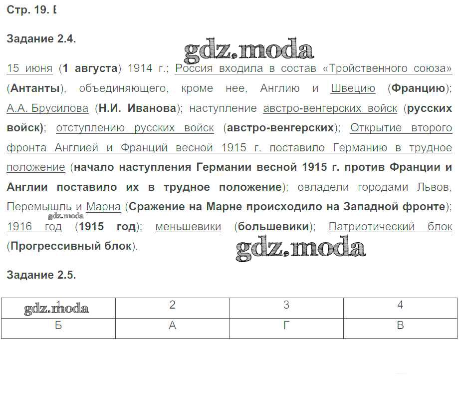 ГДЗ решение к заданию № 19 История 9 класс рабочая тетрадь История России. XX - начало XXI вв. Симонова Е.В. Экзамен 2014 ФГОС бесплатно на гдз.мода!