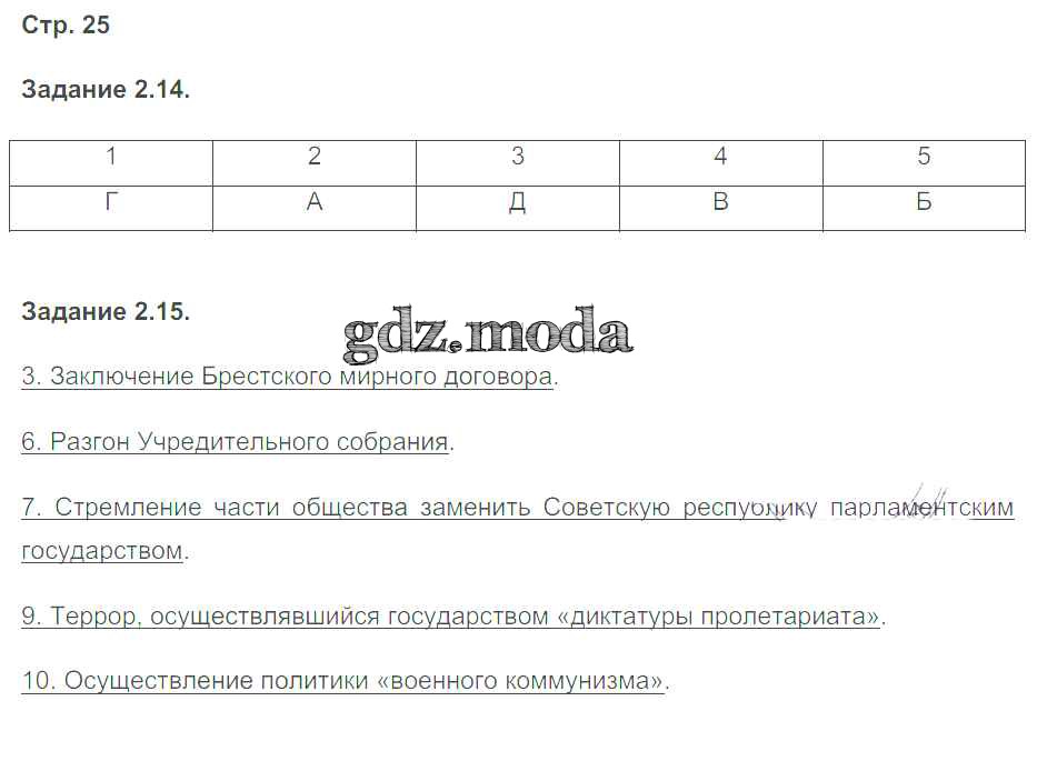 ГДЗ решение к заданию № 25 История 9 класс рабочая тетрадь История России. XX - начало XXI вв. Симонова Е.В. Экзамен 2014 ФГОС бесплатно на гдз.мода!