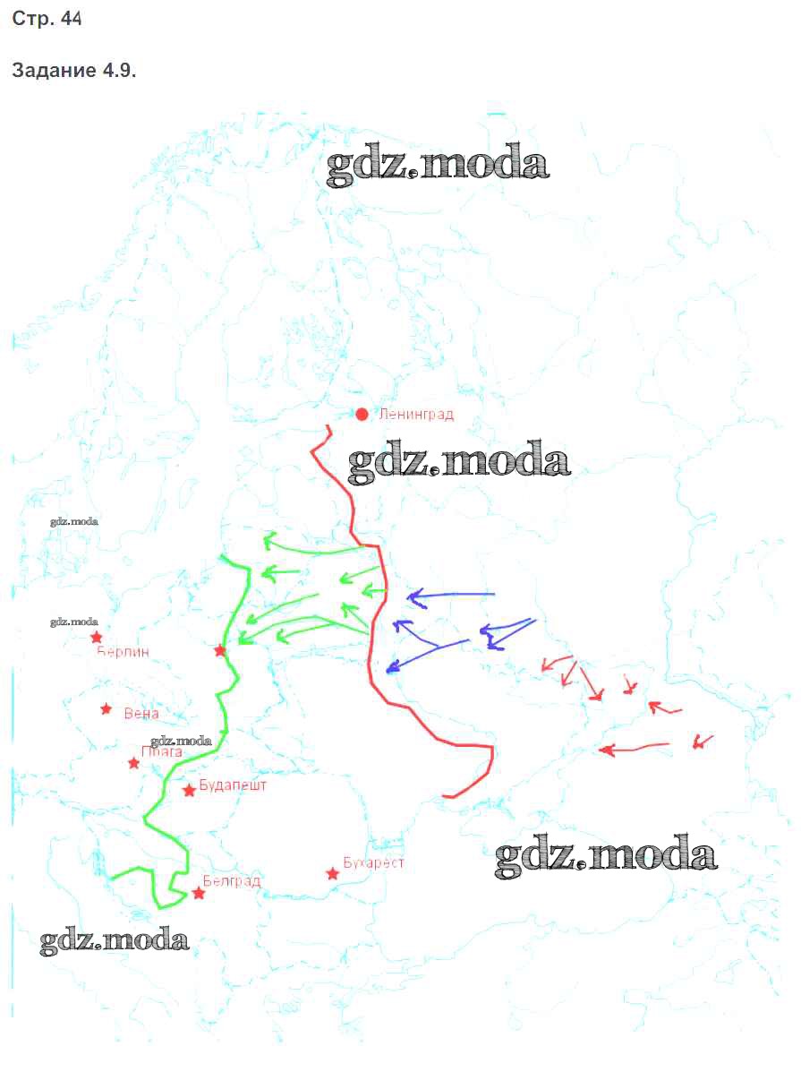 ОТВЕТ на задание № 44 Рабочая тетрадь с контурными картами по Истории 9 класс Симонова УМК