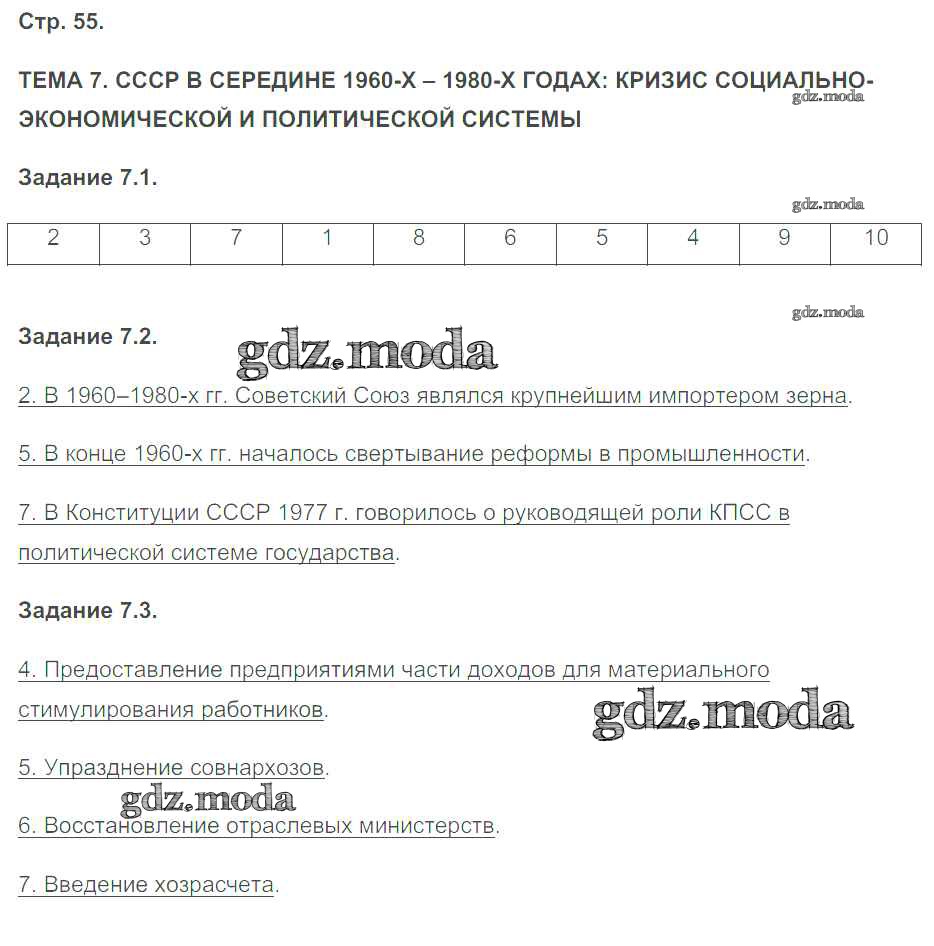 ГДЗ решение к заданию № 55 История 9 класс рабочая тетрадь История России. XX - начало XXI вв. Симонова Е.В. Экзамен 2014 ФГОС бесплатно на гдз.мода!