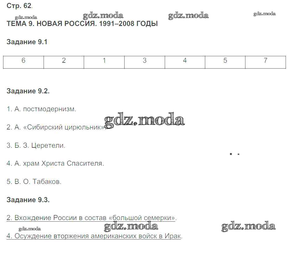 ГДЗ решение к заданию № 62 История 9 класс рабочая тетрадь История России. XX - начало XXI вв. Симонова Е.В. Экзамен 2014 ФГОС бесплатно на гдз.мода!