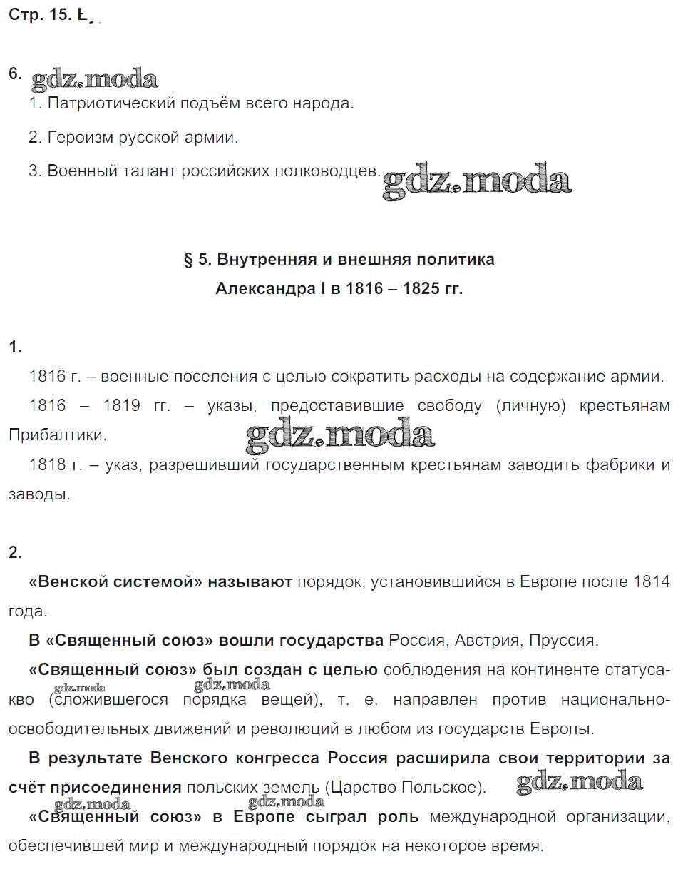 ГДЗ решение к заданию № 15 История России 9 класс рабочая тетрадь Симонова Е.В. Дрофа 2017 ФГОС бесплатно на гдз.мода!
