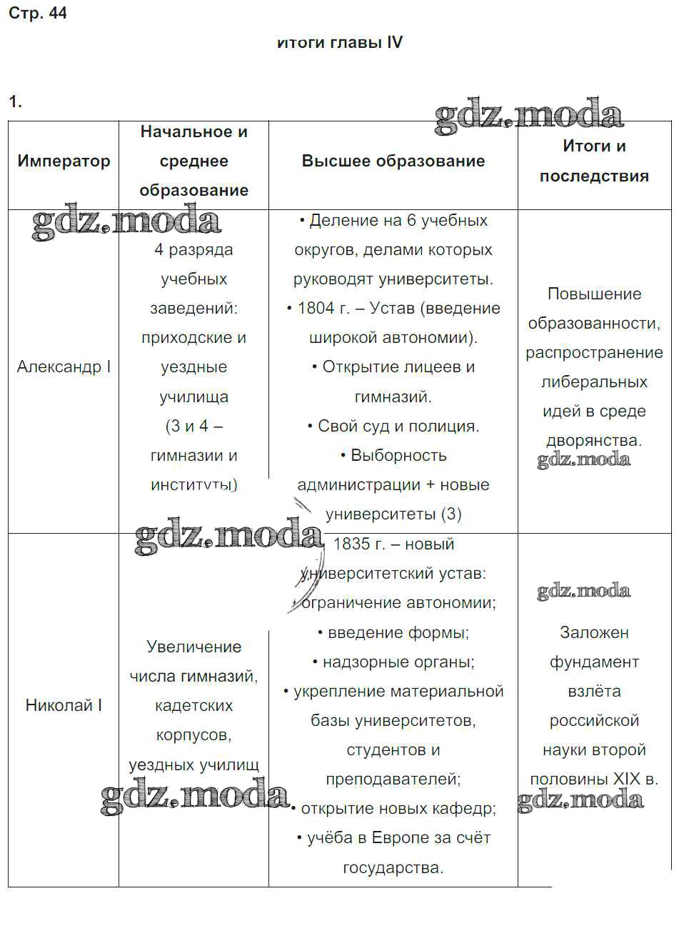 ГДЗ решение к заданию № 44 История России 9 класс рабочая тетрадь Симонова Е.В. Дрофа 2017 ФГОС бесплатно на гдз.мода!