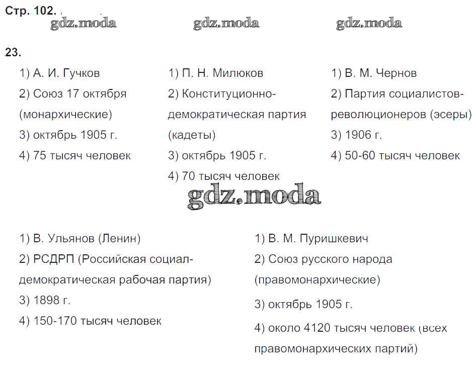 ГДЗ решение к заданию № 102 История России 9 класс рабочая тетрадь Стафёрова Е.Л. Русское слово 2019 ФГОС бесплатно на гдз.мода!