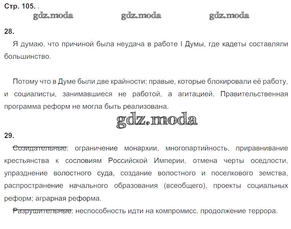 ГДЗ решение к заданию № 105 История России 9 класс рабочая тетрадь Стафёрова Е.Л. Русское слово 2019 ФГОС бесплатно на гдз.мода!